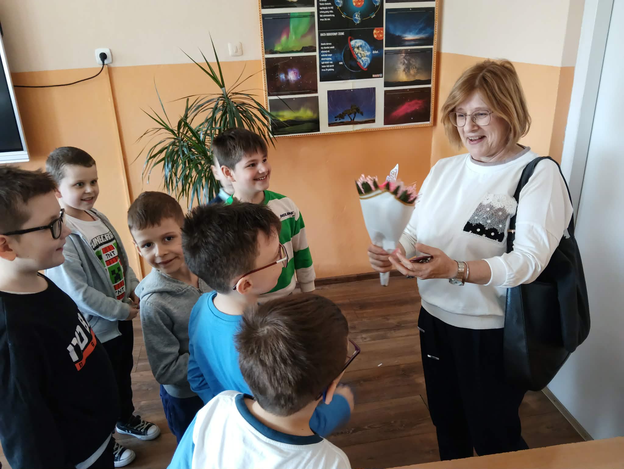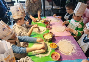 6 marca w klasie 1B upłynął pod znakiem radości i życzeń z okazji Międzynarodowego Dnia Kobiet. Chłopcy zadbali, aby Panie i Dziewczęta poczuły się wyjątkowo, wręczając im kwiaty, drobne upominki oraz składając serdeczne życzenia. Z tej okazji również całą klasą wybrali się na wyjątkowe warsztaty kulinarne, podczas których mieli okazję własnoręcznie przygotować swoją pizzę. Dzieci wybierały ulubione składniki i z radością obserwowały, jak ich wypieki trafiają do pieca.